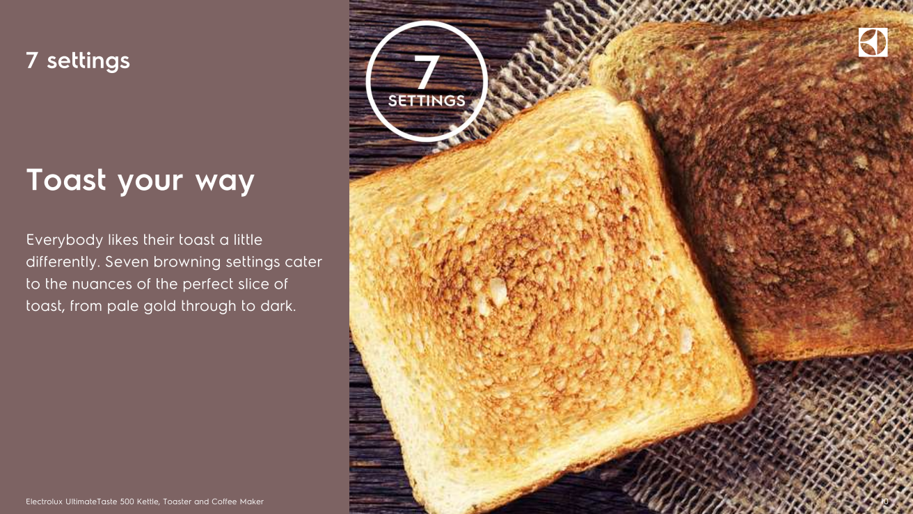 - 7 settings for making toast to taste.