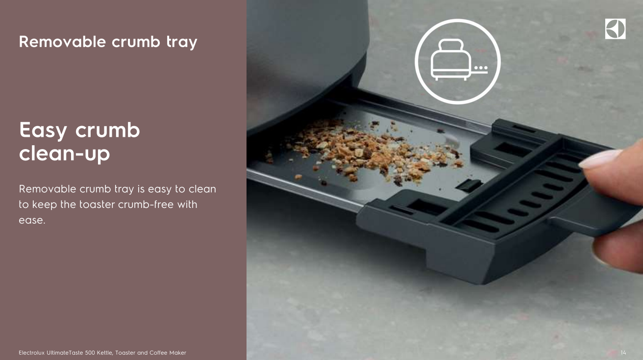 - Removable crumb tray