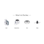 - Accessories: 1.3L Plastic Bowl, Express Serve, Disc, Stainless steel Blade