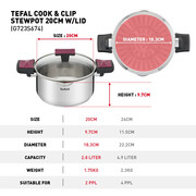 Tefal Cook & Clip 6-Piece Set (Saucepan w/Lid 16cm+ Stewpot w/Lid 20cm & 24cm) | G723S6