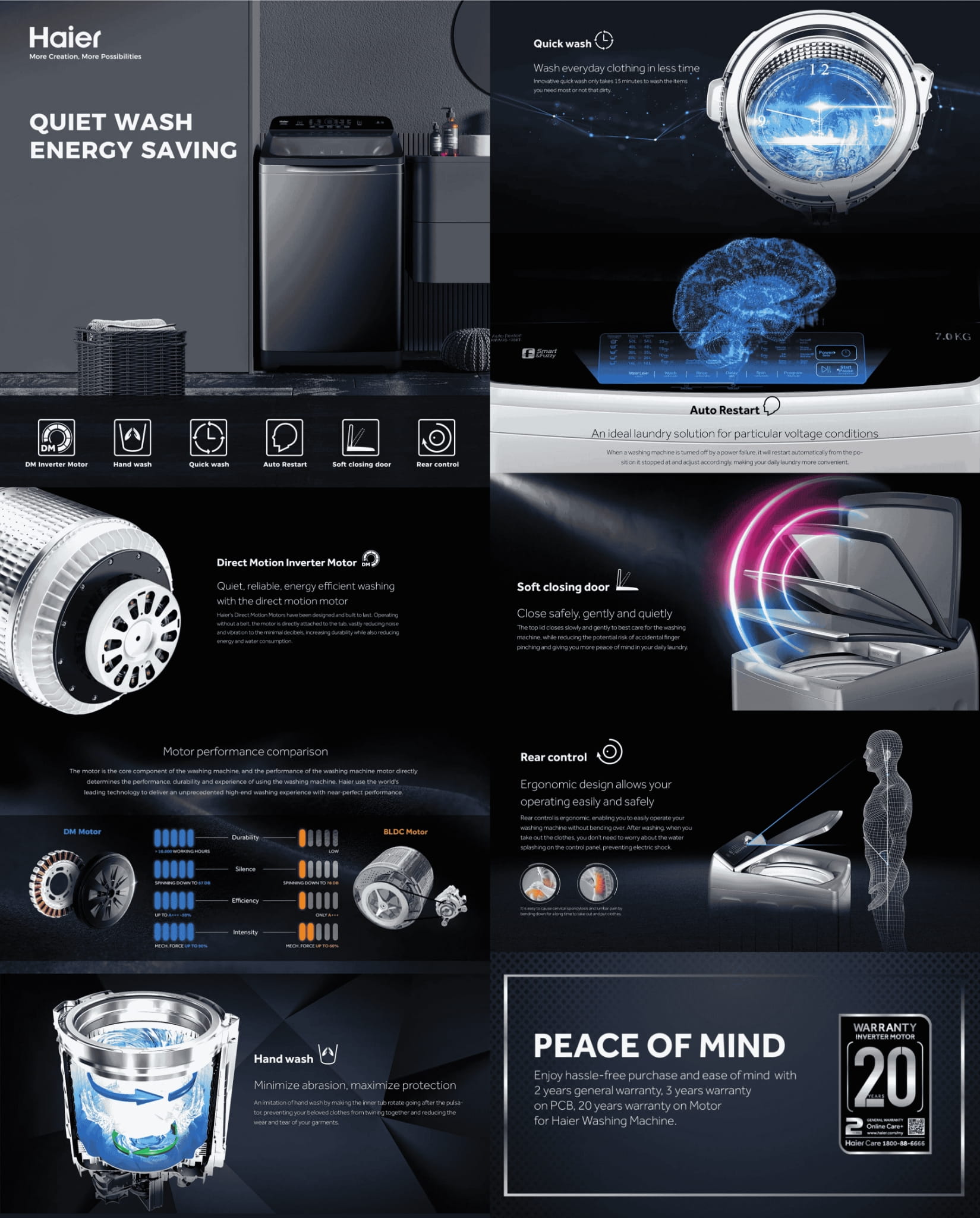 HAIER 11KG DD INVERTER TOP LOAD WASHING MACHINE | HWM110-B1678ES8
