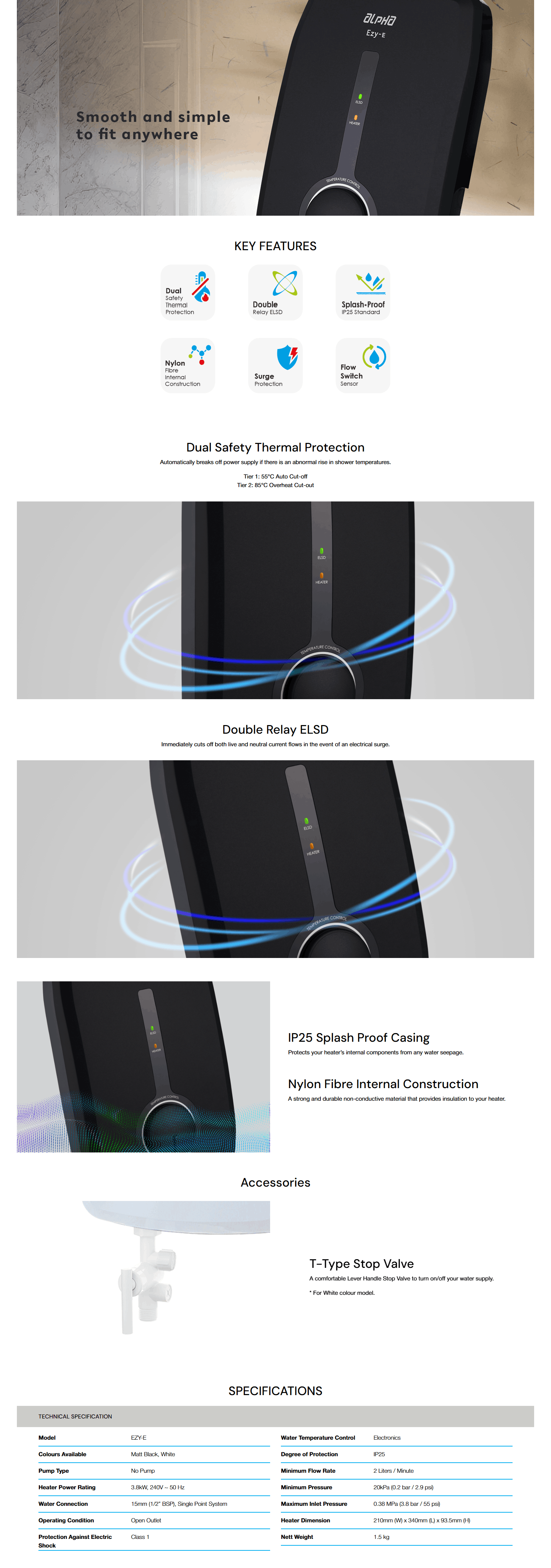 ALPHA EZY WATER HEATER WITHOUT PUMP - MATT BLACK | EZY E-MATT BLACK