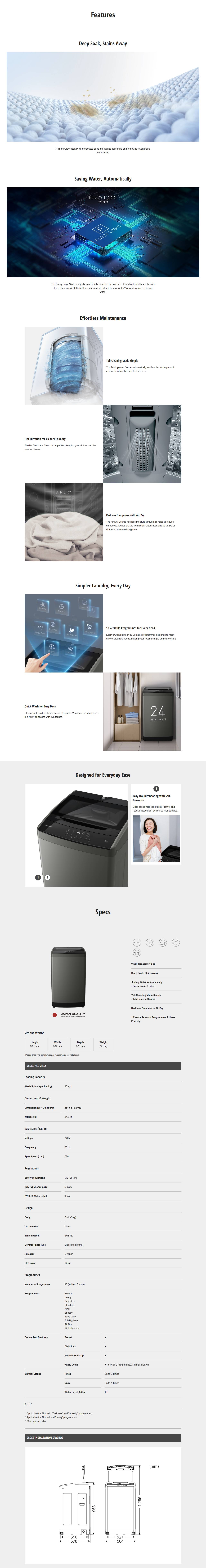 PANASONIC 10KG TOP LOAD WASHER - DARK GRAY | NAF10JS1GRT