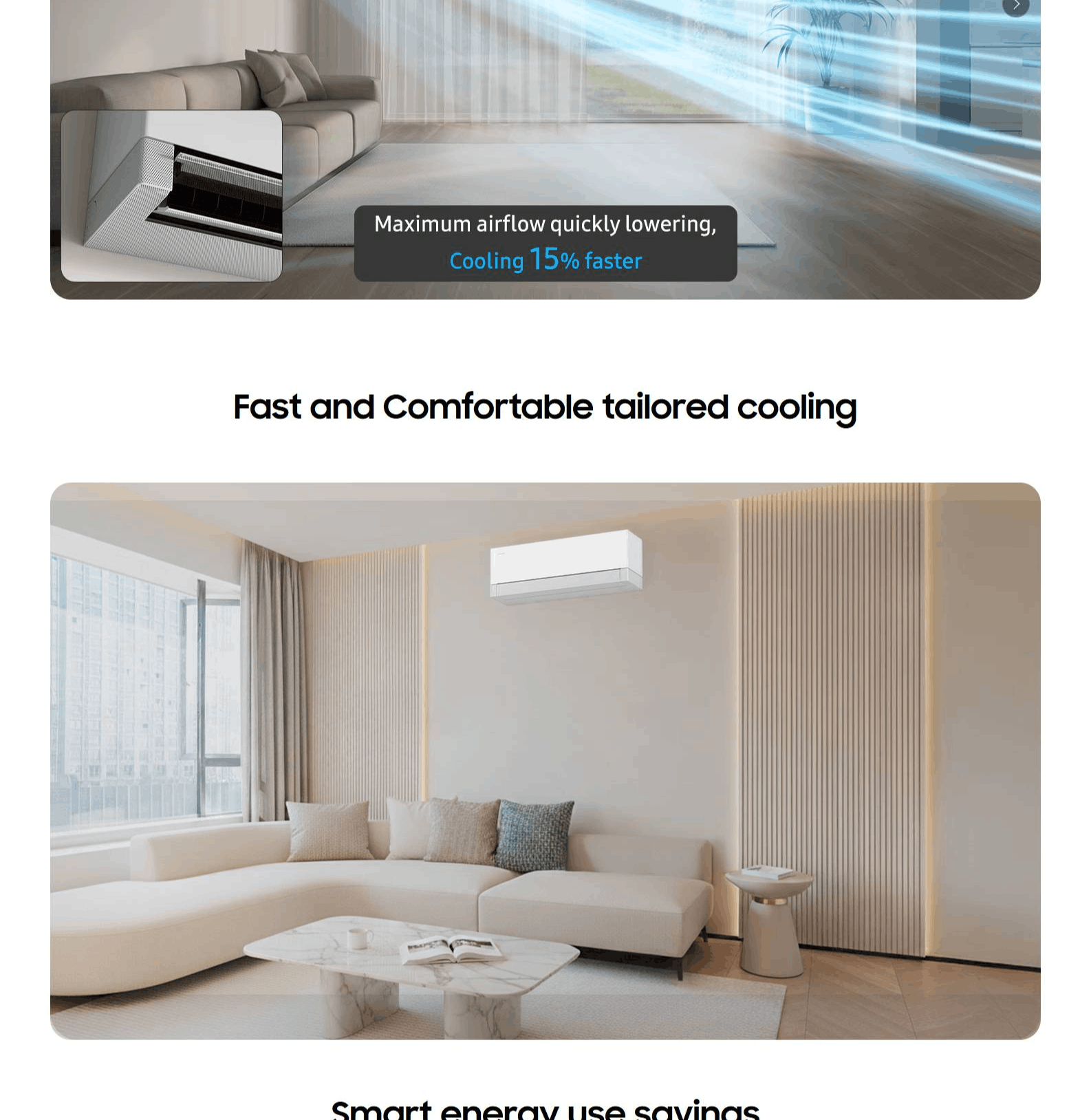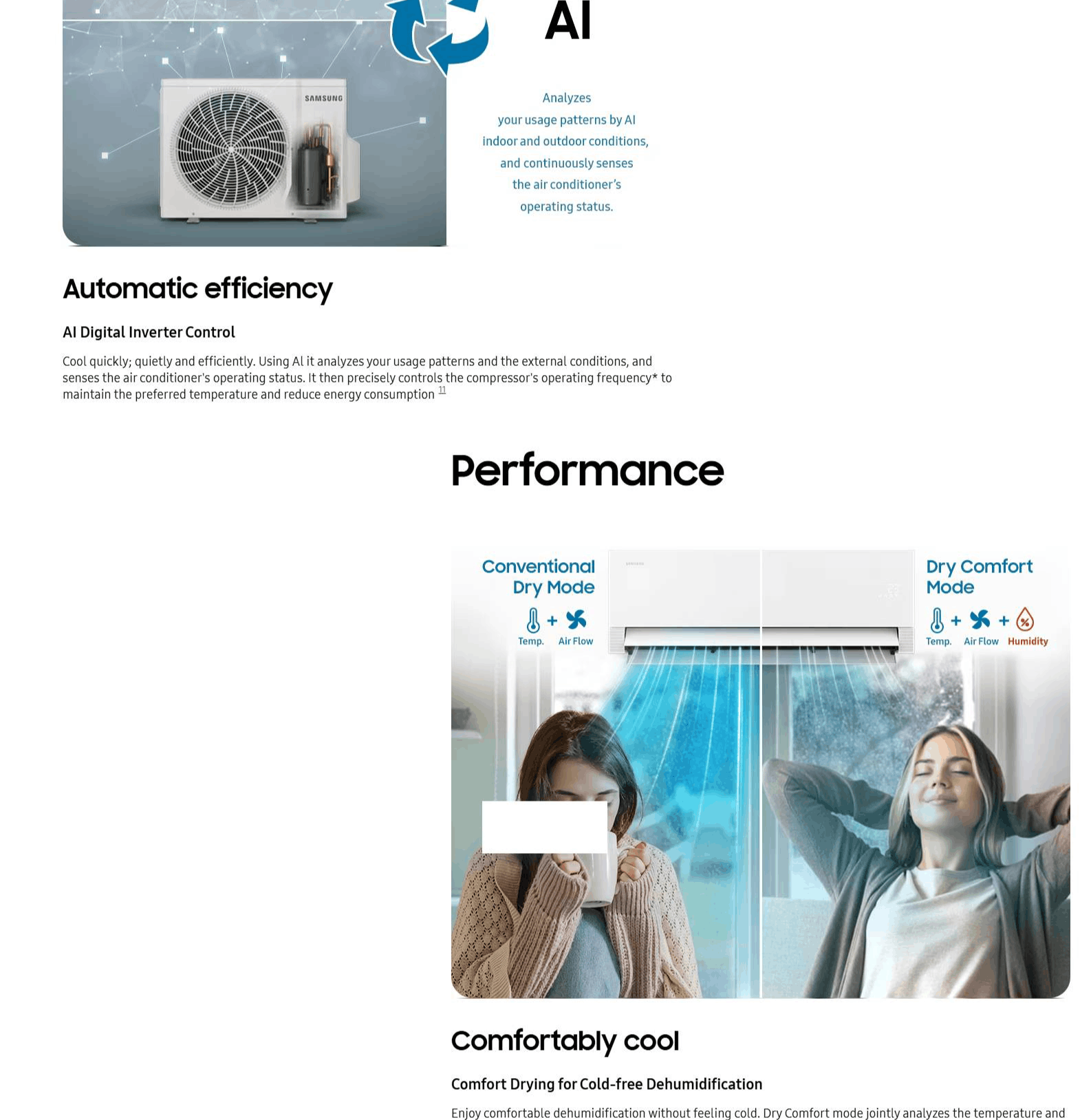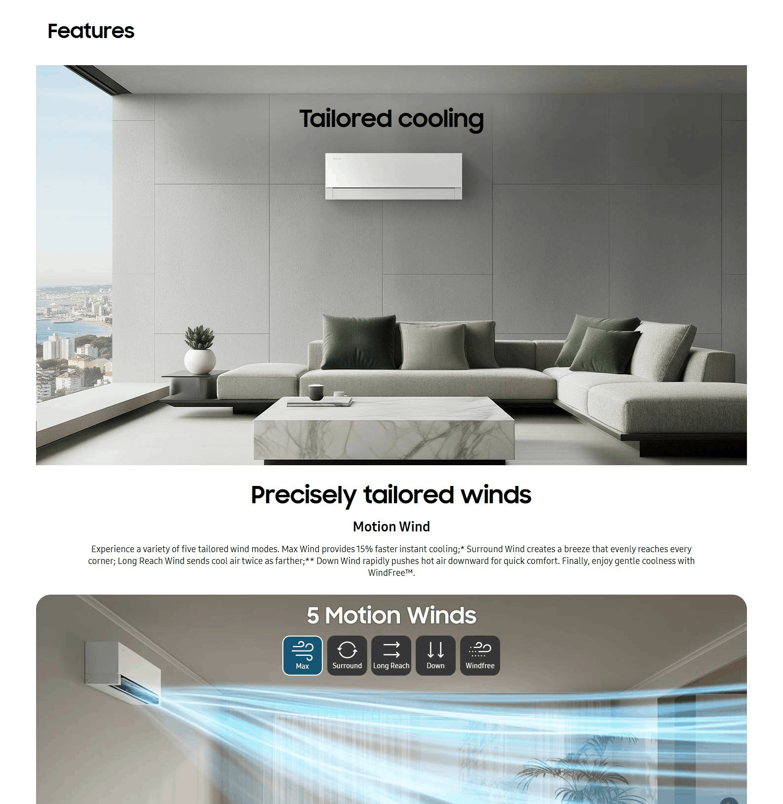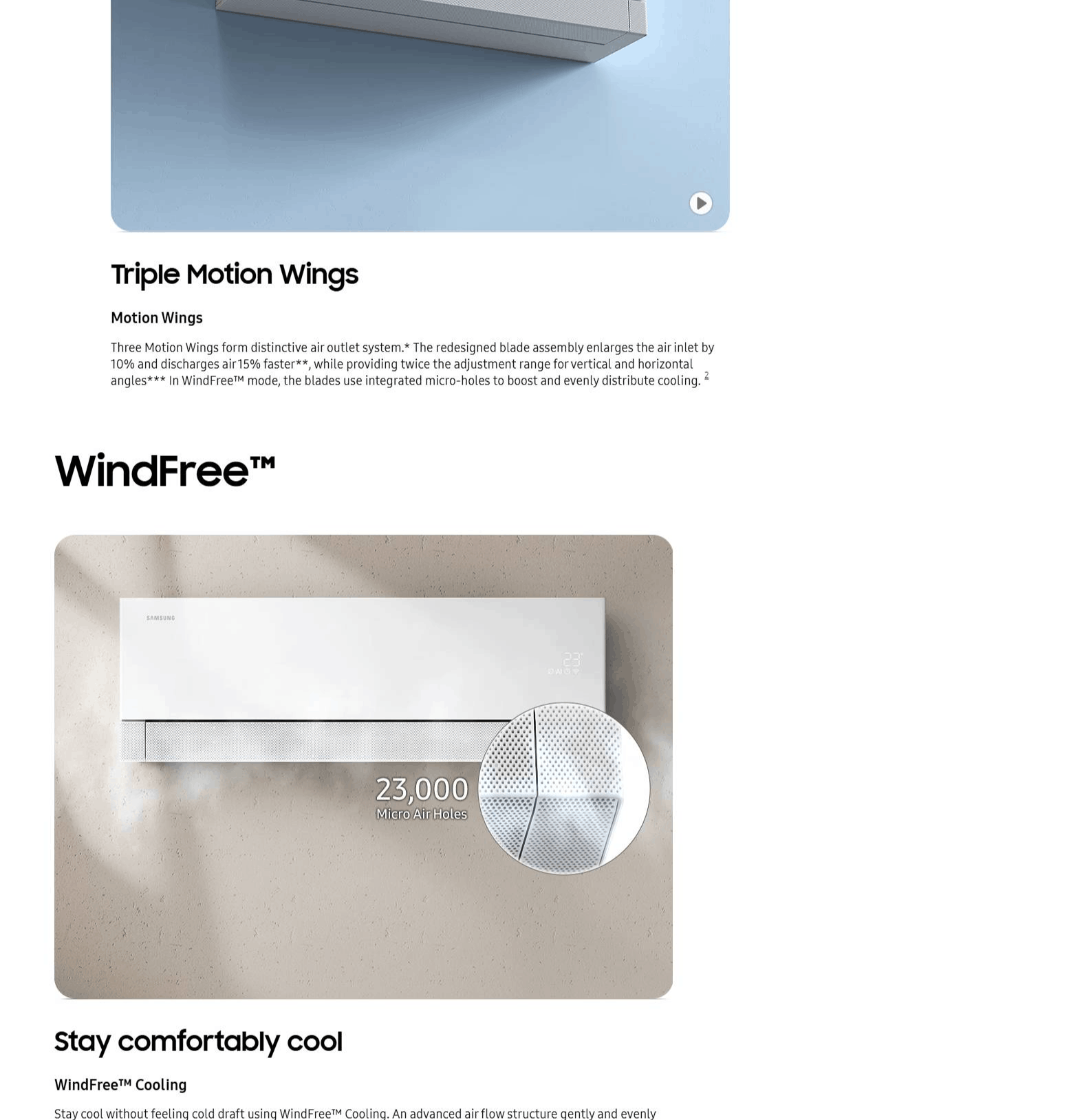 SAMSUNG BESPOKE AI WINDFREE PREMIUM SPLIT COND INDOOR 1.0HP | AR70H10D1GWNME