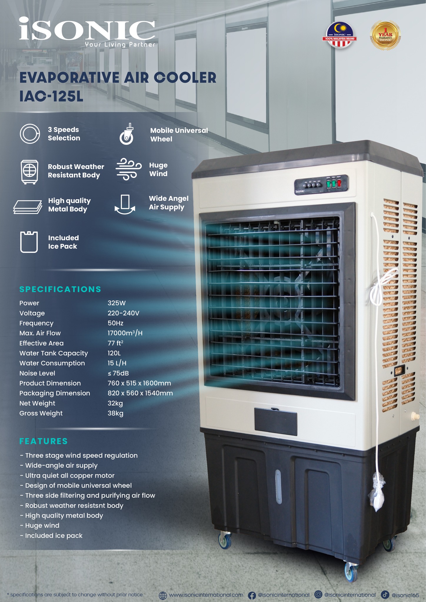 ISONIC 125L/325W EVAPORATIVE AIR COOLER (17,000m3/h) | IAC125L