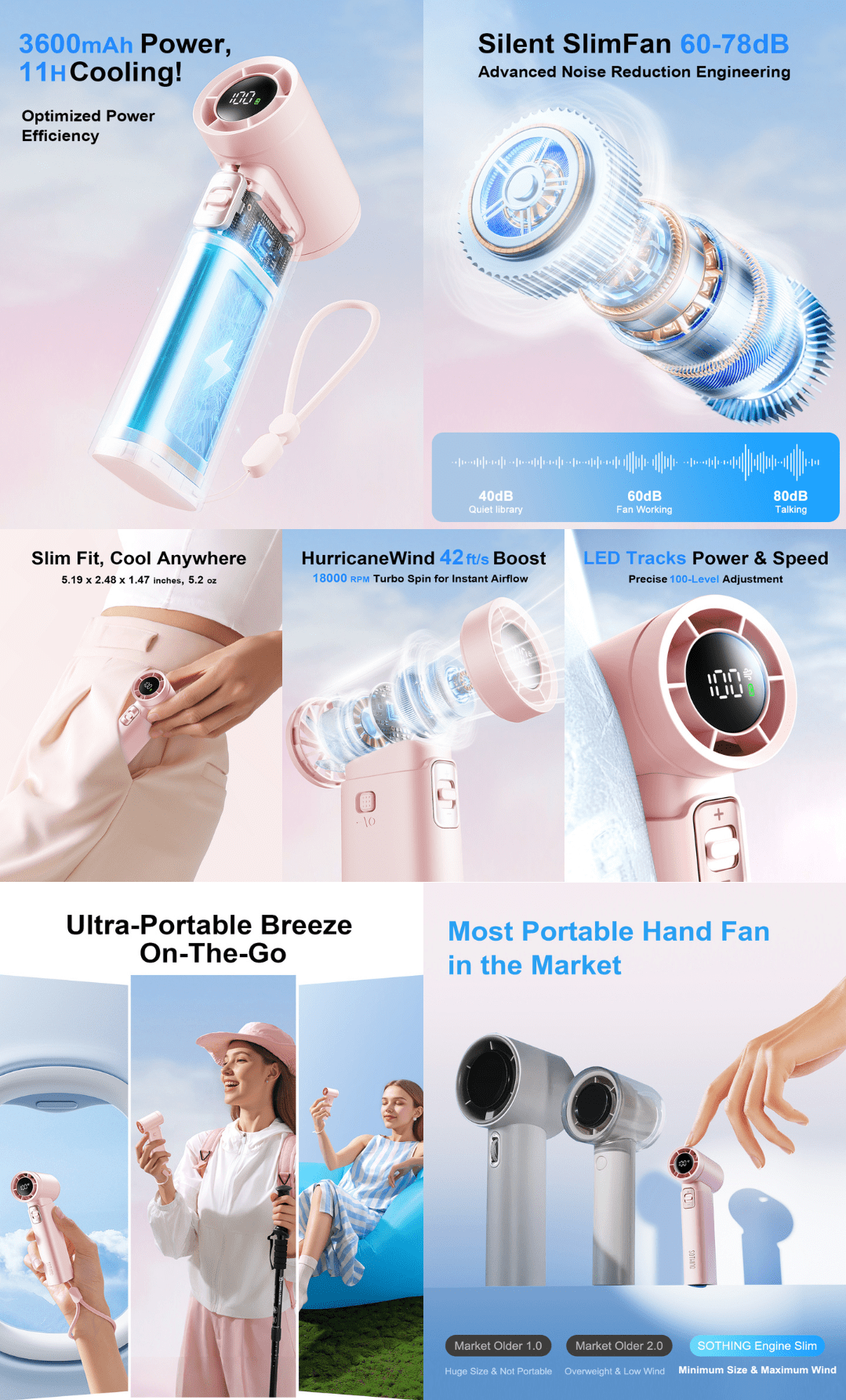 SOTHING TURBO HANDHELD FAN ENGINE SLIM - PINK | DSHJ-S-2422B-PINK